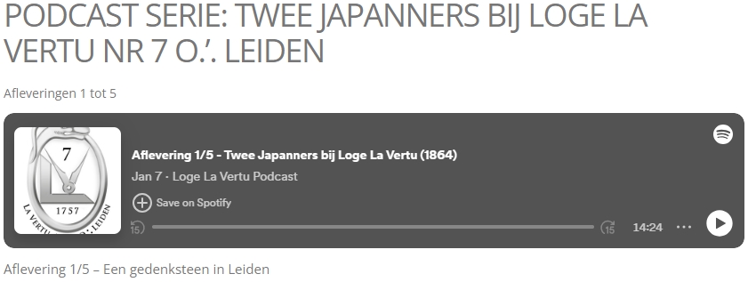 Een fascinerend verhaal over twee Japanners in Leiden (1864), die ruim 2 jaar in Leiden verblijven en studeren. En ook nog in het geheim lid worden van de Vrijmetselarij Loge La Vertu uit Leiden.